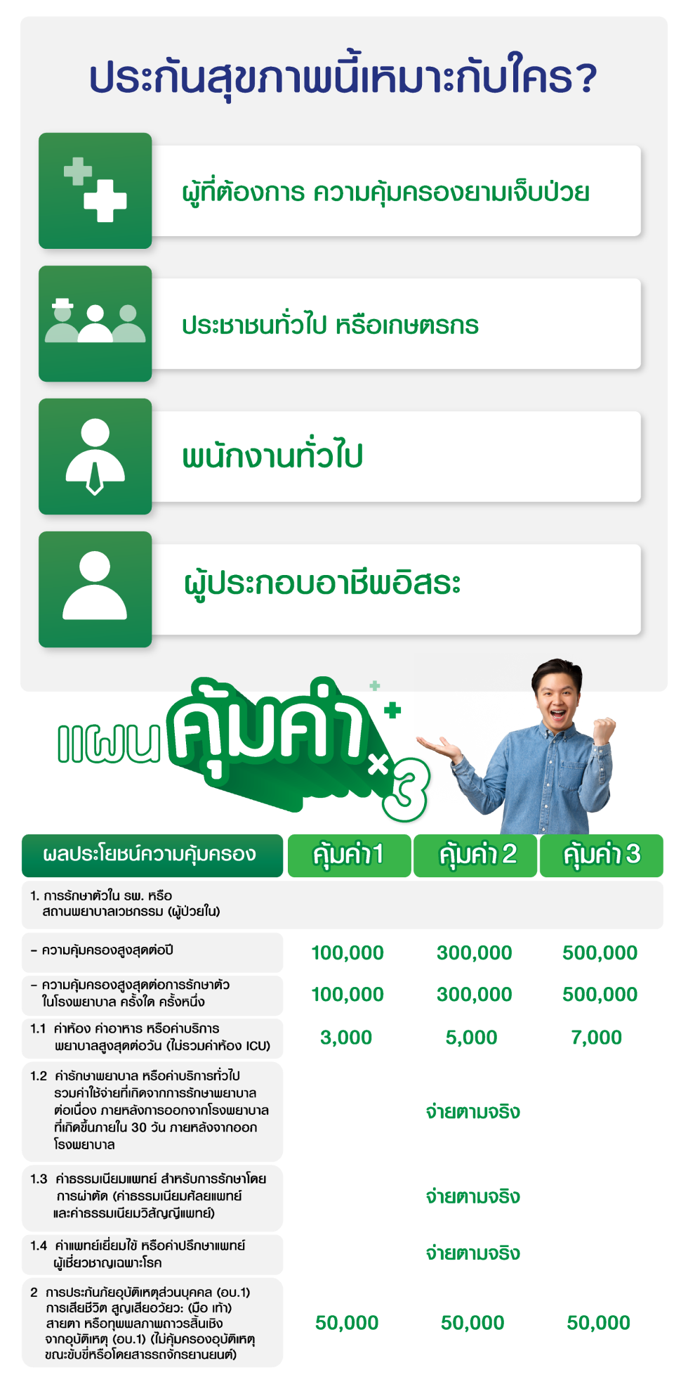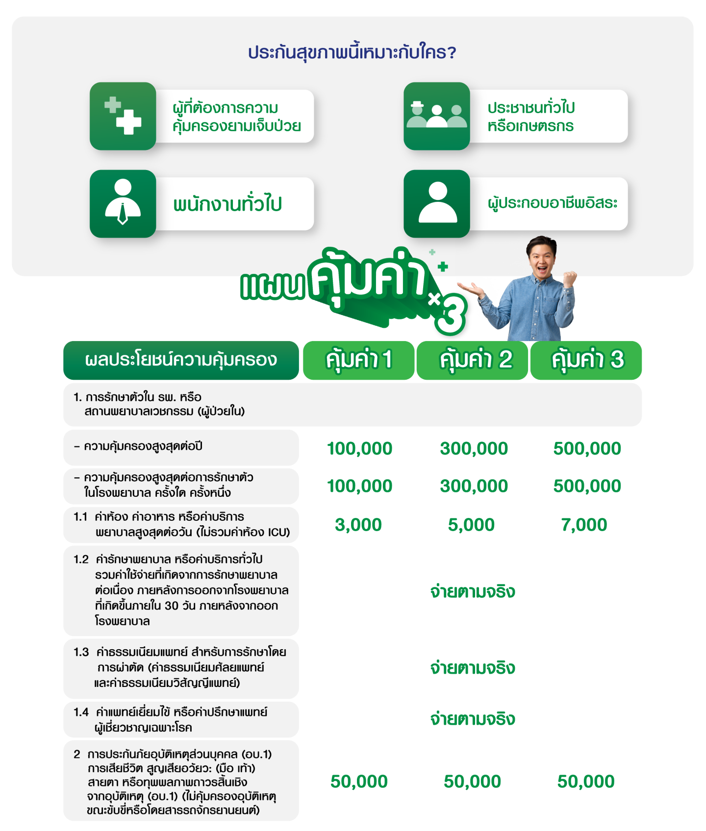 หมายเหตุ * เงื่อนไขความคุ้มครองและข้อยกเว้นเป็นไปตามเงื่อนไขที่ระบุไว้ในกรมธรรม์ประกันภัย ผู้ซื้อควรทำความเข้าใจในรายละเอียดความคุ้มครองและเงื่อนไขก่อนตัดสินใจทำประกันภัยทุกครั้ง